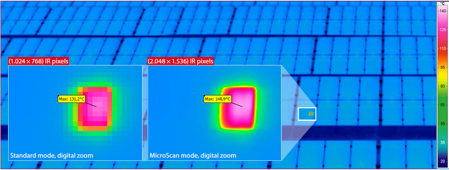 La tecnología MicroScan esta compuesta de un sistema opto-mecánico y diseñado para funcionar de manera permanente. Gracias a su detector FPA de última generación, permite cuadriplicar el número de píxeles de medida IR. Muestra valores de temperatura reales sin ningún tipo de interpolación digital. Esto abre un gran rango de aplicaciones, mejorando la efectividad y la fiabilidad de las medidas termográficas.