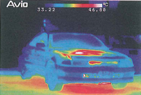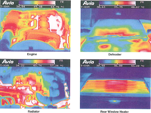 Automóvil emite una gran cantidad de calor cuando se acciona. En el desarrollo de automóviles, las cámaras termográficas se utilizan para medir las temperaturas de varias partes del automóvil.